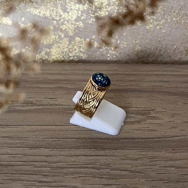Cette bague taille unique et réglable met en valeur un print de cyanotype "lion ".