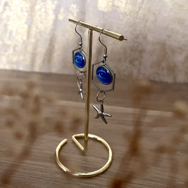 Ces boucles d’oreilles mettent en valeur un print de cyanotype "œil ".