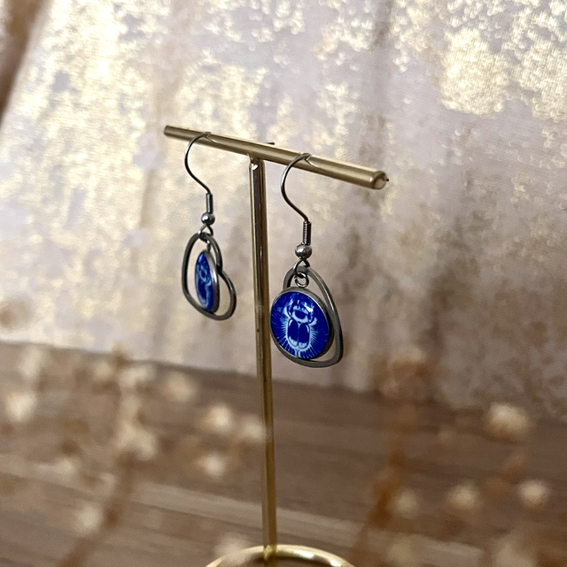 Ces boucles d’oreilles mettent en valeur un print de cyanotype "scarabée ".