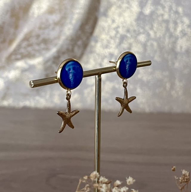 Ces boucles d’oreilles mettent en valeur un print de cyanotype « méduse ».