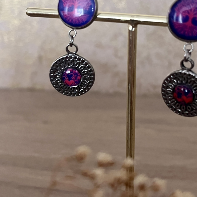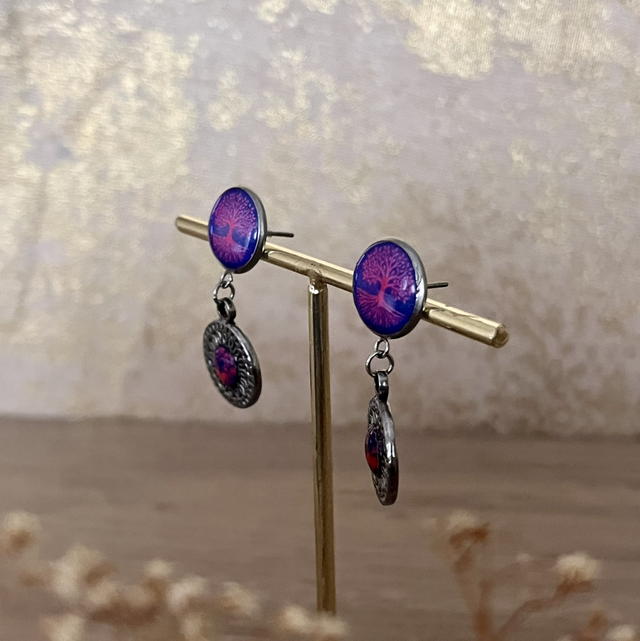 Ces boucles d’oreilles mettent en valeur un print de cyanotype "Arbre de Vie ".