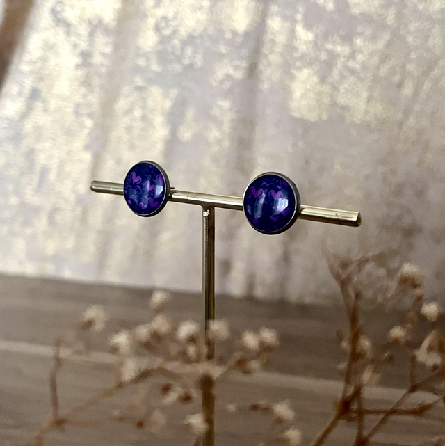 Ces boucles d’oreilles mettent en valeur un print de cyanotype "cœur ".