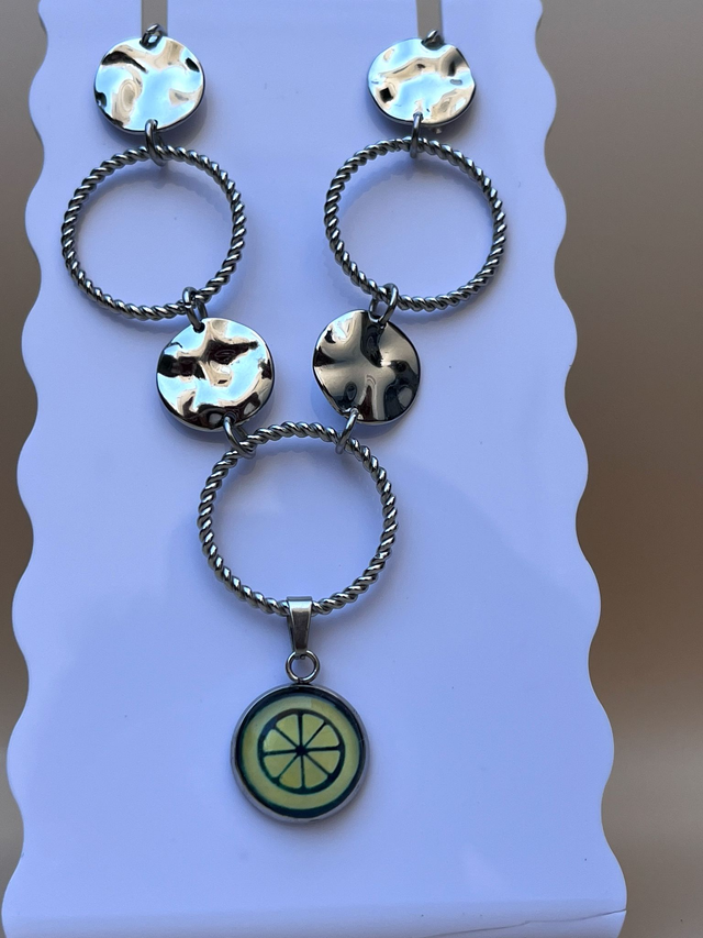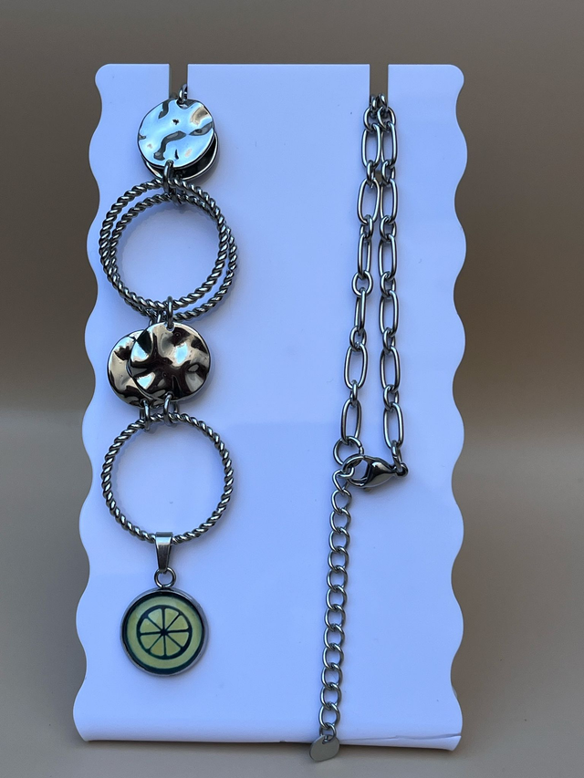 Ce collier met en valeur une reproduction de cyanotype "citron".