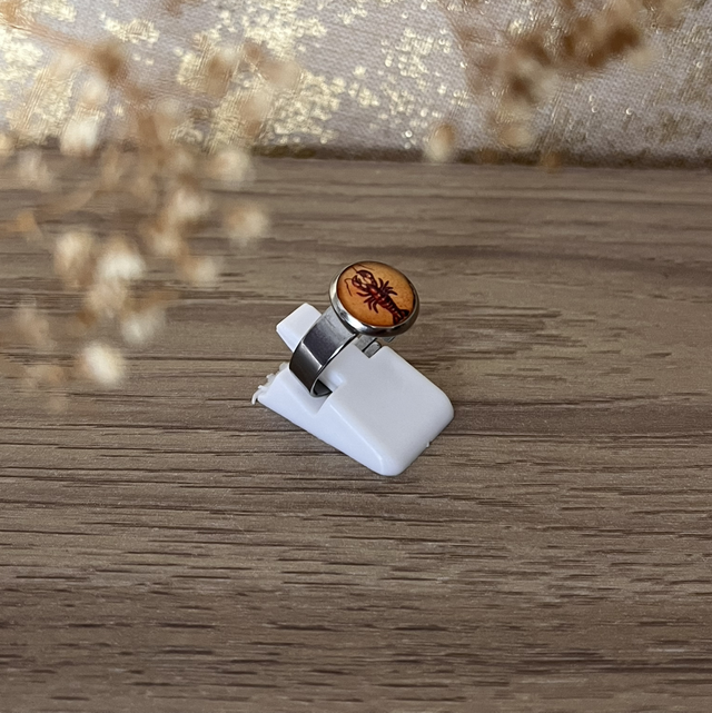 Cette bague taille unique et réglable met en valeur un print de cyanotype "homard ".